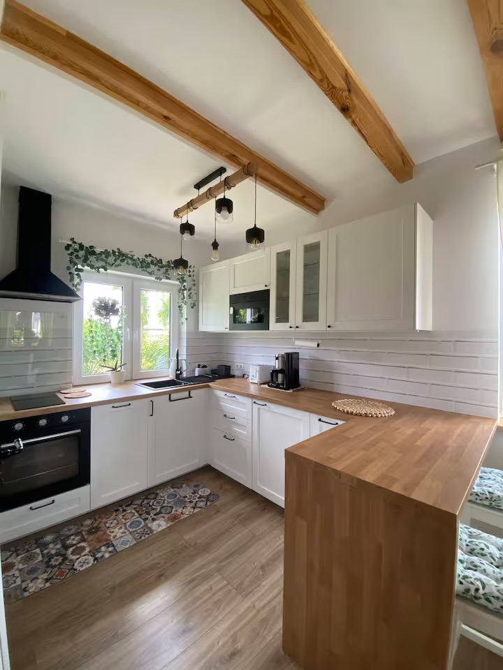 Akcesoria do grillowania • Blacha do pieczenia • Czajnik • Piekarnik • Ekspres do kawy • Kuchenka mikrofalowa • Kieliszki do wina • Lodówka • Płyta kuchenna • Toster • Zmywarka do naczyń • Kawa • Naczynia i sztućce